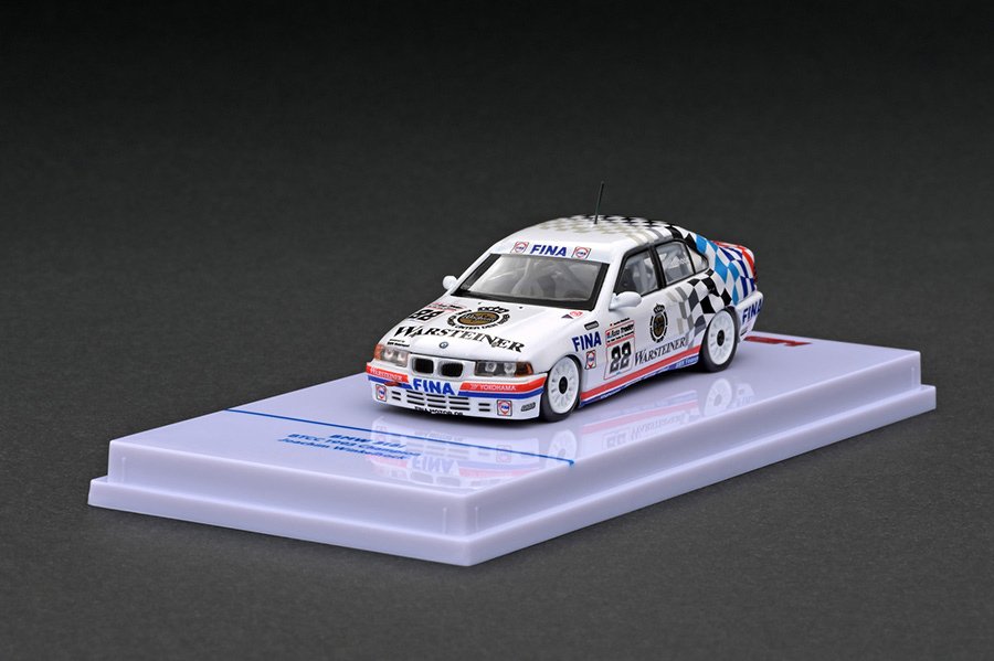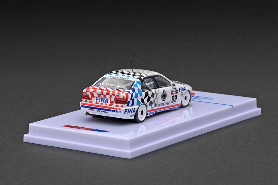 BMW 318i w barwach Warsteiner / FINA #28 to samochód, który zapisał się w historii wyścigów turystycznych jako mistrz BTCC 1993. Charakterystyczne malowanie z szachownicą oraz sponsorami sprawia, że to jeden z najbardziej rozpoznawalnych samochodów tej epoki.